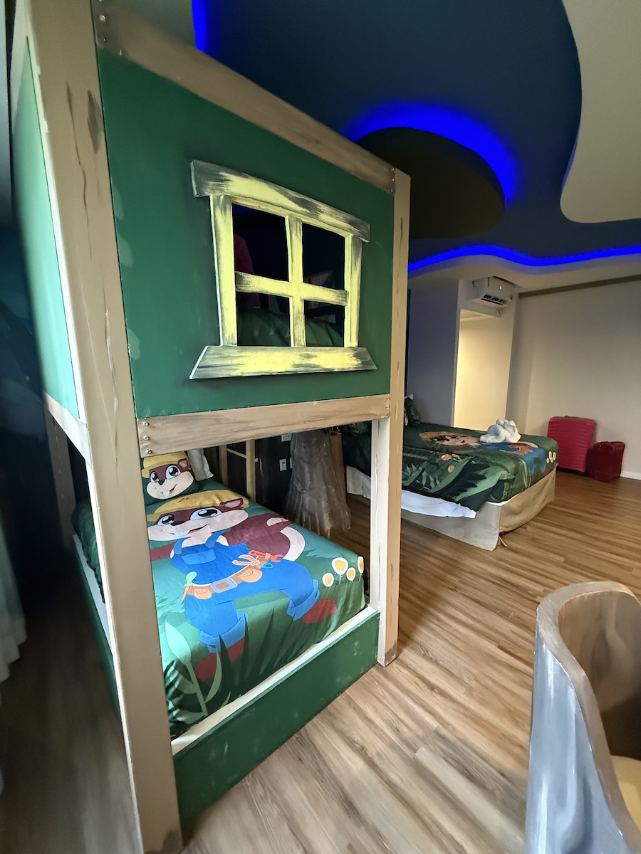 1 – quarto temático do esquilo Pepito é bem fofinho, tamanho bom, banheiro um pouco pequeno.