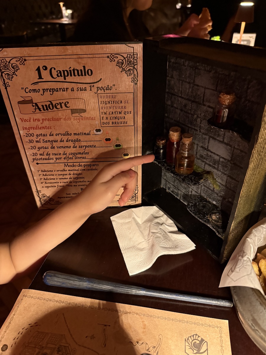 Se você tem um pequeno bruxinho em casa (ou é fã do mundo mágico) vai adorar conhecer o restaurante temático Beco Hexagonal , em Moema, zona sul de São Paulo. O restaurante é totalmente temático, inspirado em um famoso universo de bruxos, desde a decoração, cheia de detalhes incríveis, até o cardápio com pratos criativos e nomes divertidos.