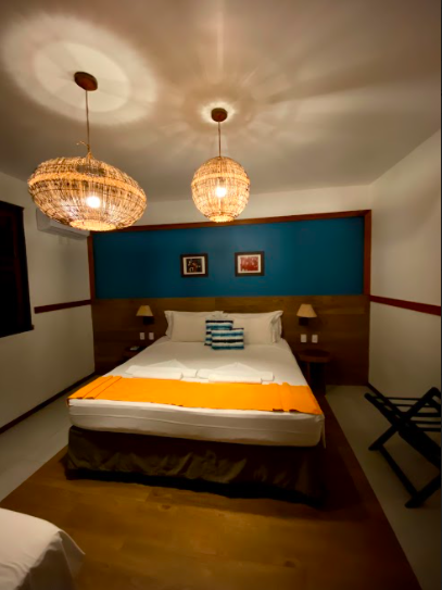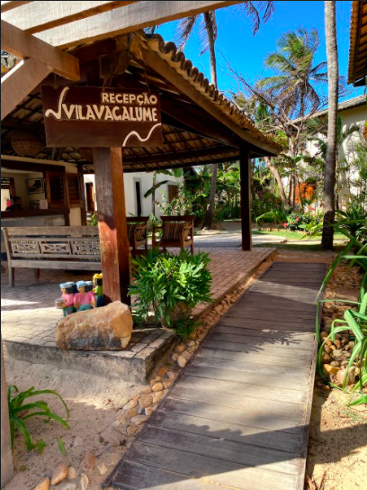 Ficamos hospedados em uma pousadinha pequena e charmosa, a Vila Vagalume. Com apenas 34 quartos e boa parte deles vazios na ocasião, a pousada é pé na areia, com piscina de água morna, parquinho e restaurante aberto o dia inteiro.