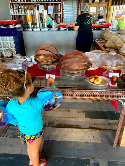 Todos os dias, ela comeu a mesma comida que nós, papai e mamãe no restaurantes da região e no da pousada. Uma dica de restaurante que vale super a pena é o Guajiru Com Pimenta, simples, autêntico e delicioso.