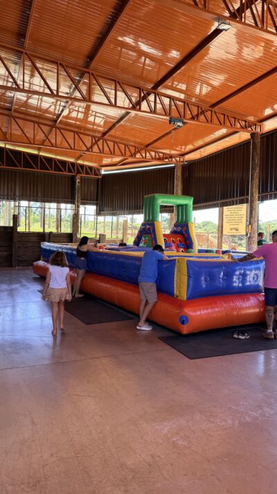 Fomos conhecer o Pezão na Roça, que fica em Indaiatuba, cerca de uma hora e meia de São Paulo. O lugar é um restaurante com clima rústico estilo fazenda, tem comida simples e é uma opção para curtir um almoço em família, em um lugar amplo ao ar livre e com espaço kids e brinquedos infláveis e monitoria.