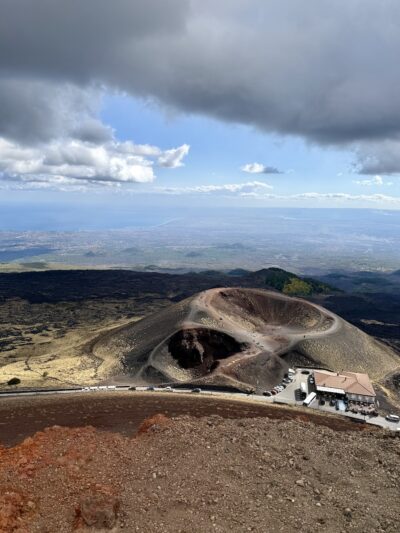 Um dos passeios mais impressionantes da viagem foi ao Monte Etna, o vulcão mais alto e ativo da Europa. Fechamos o passeio também com a Descobrindo a Sicília e fomos de carro desde Palermo (cerca de 3h de viagem).