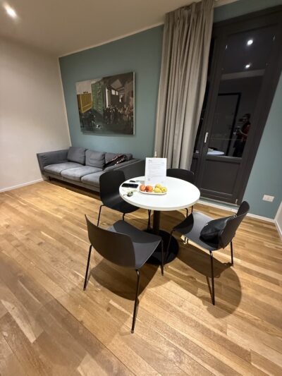 Em Palermo, ficamos hospedados no Palazzo Santamarina, super bem localizado, no coração do centro histórico. A suíte tinha dois quartos, sala, cozinha completa, inclusive com com máquina de lavar roupa, perfeita para famílias. Único ponto de atenção: como a região é de ruas exclusivas para pedestres, carro não circula e precisou ser parada a um quarteirão de distância.