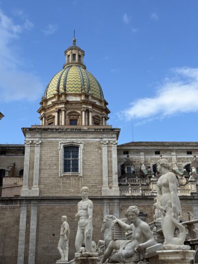 Começamos nossa viagem por Palermo, uma cidade intensa, histórica e cheia de personalidade. No primeiro dia, contratamos um city tour a pé de 4 horas com a Descobrindo a Sicília, que foi ótimo para entender o centro histórico e visitar lugares com calma.