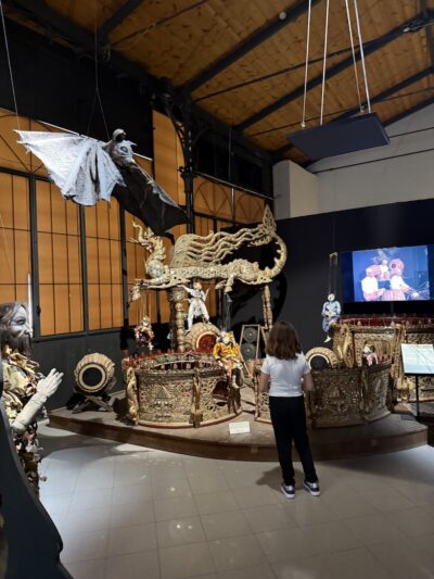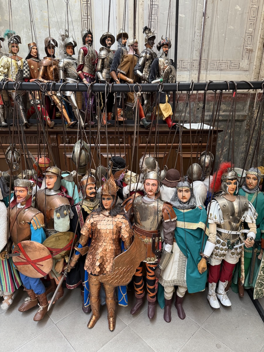 Um dos passeios mais legais que fizemos em Palermo foi o Museu delle Marionette. A Sicília mantém viva há mais de 200 anos a tradição da Opera dei Pupi, um teatro de marionetes criado para contar histórias de cavaleiros medievais, dragões, reis e batalhas épicas. Os bonecos são feitos à mão, de madeira e metal, e alguns chegam a medir quase um metro e pesar vários quilos. Não à toa, a Opera dei Pupi foi declarada Patrimônio Imaterial da Humanidade pela UNESCO.