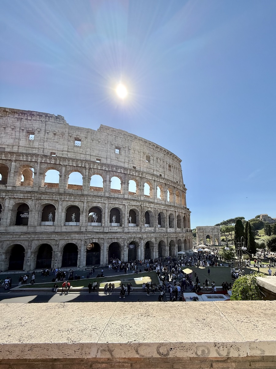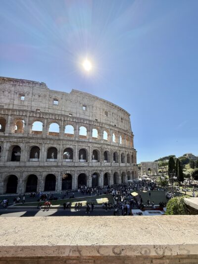 Partimos de São Paulo rumo a Roma em um voo de cerca de 12 horas. Tivemos uma escala de aproximadamente sete horas na capital italiana e aproveitamos para fazer um bate e volta rápido até o Coliseu e a Fontana di Trevi – fomos de Uber, cerca de 40 minutos do aeroporto.