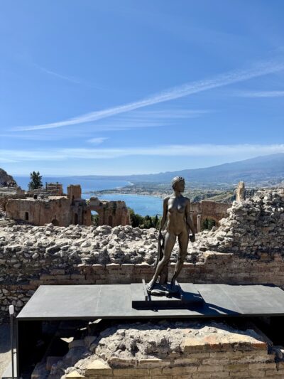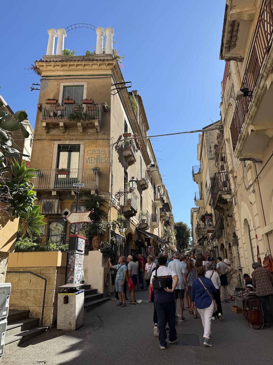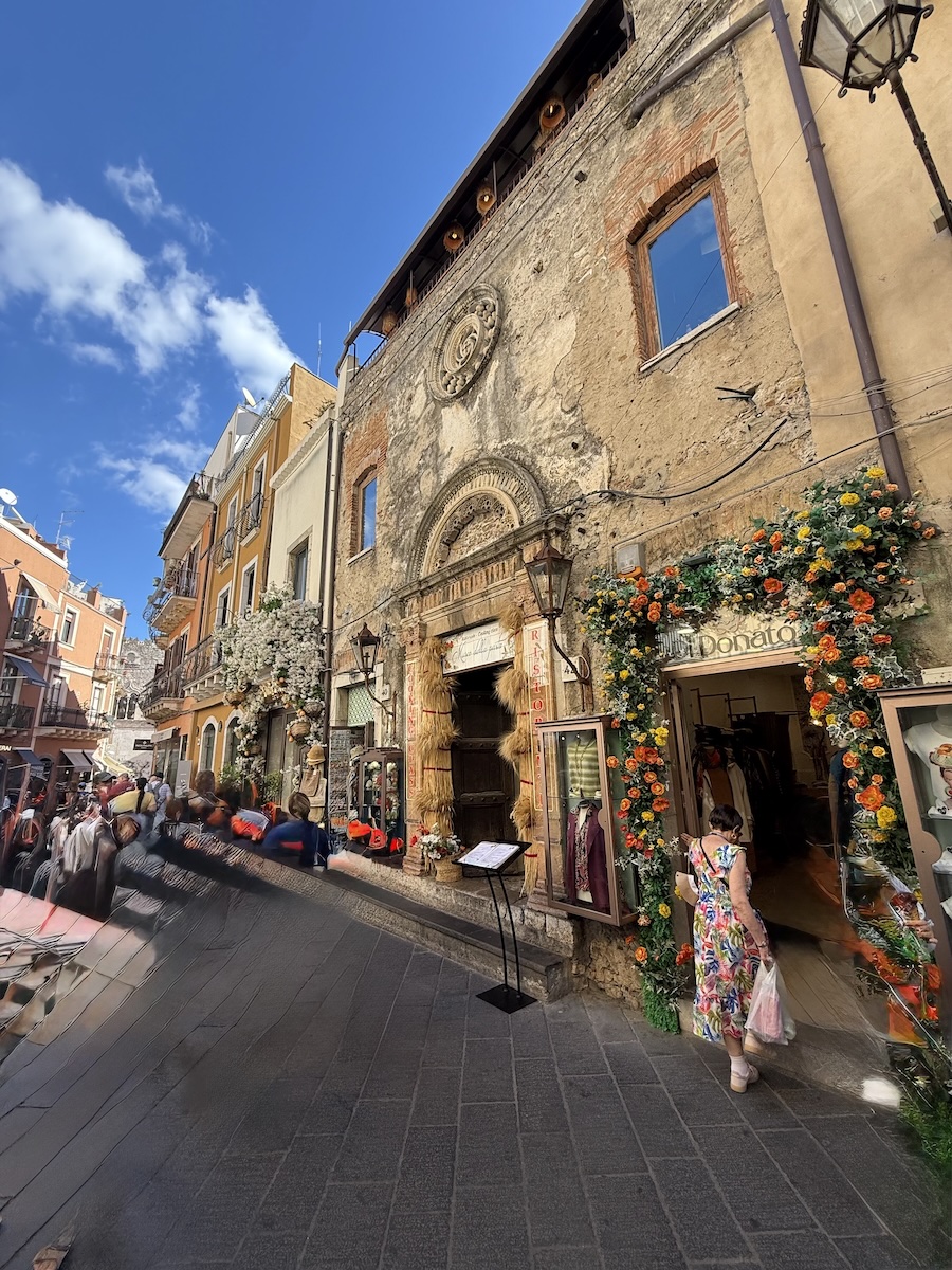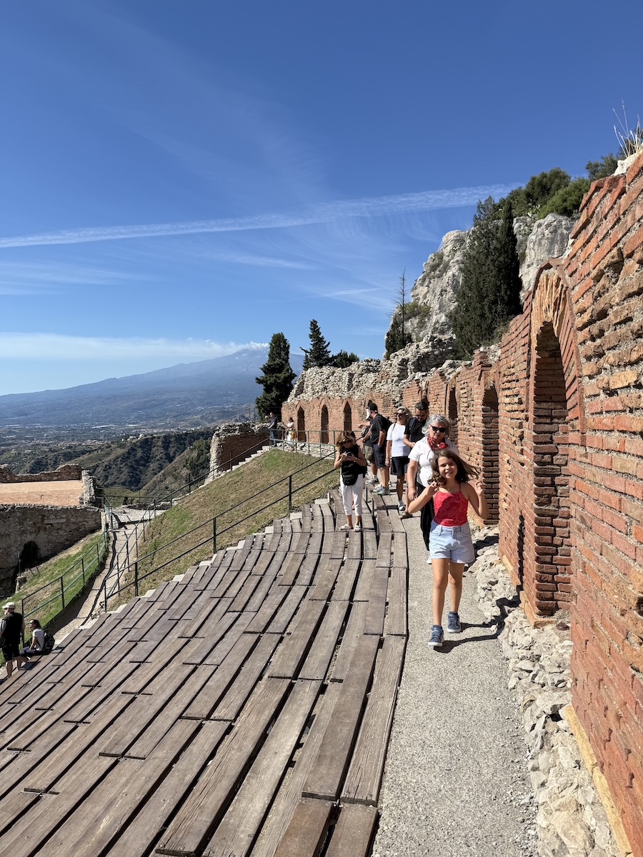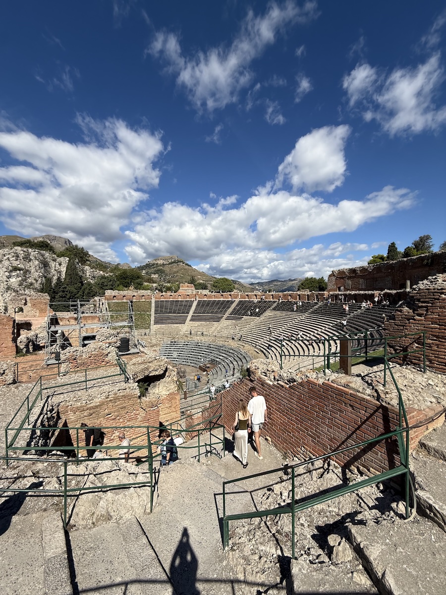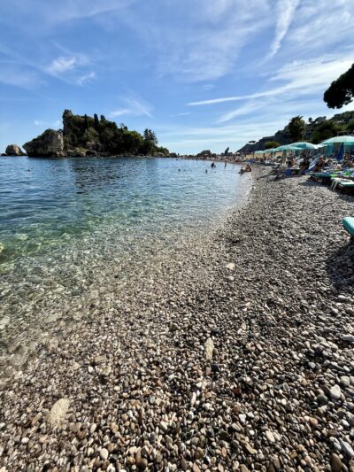 Depois do Etna, seguimos de carro até Taormina (cerca de 1h de viagem), onde ficamos 4 dias. A cidade é encantadora, com clima agradável grande parte do ano, praias lindas, com águas cristalinas e mar calmo, ruazinhas charmosas, cheias de flores, lojinhas e gelaterias e muita história, especialmente no Teatro Antico di Taormina, que até hoje recebe espetáculos, sem contar a gastronomia maravilhosa de massas, frutos do mar, pistache, arancini, granita e gelatos.