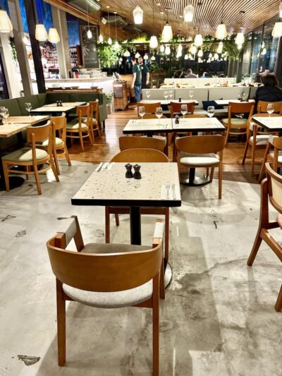 Além do cardápio com pratos assinados pelo chef, como massas frescas, saladas, hambúrgueres e sobremesas, o restaurante tem um espaço kids bem montado, com brinquedos, livros, mesinhas para desenhar e até monitoria em determinados dias e horários (vale conferir antes de ir). Nos finais de semana as crianças não pagam pelo seu prato.