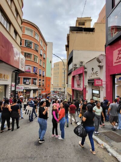 Fomos de metrô, que sem dúvida é a forma mais prática de chegar. Descemos na estação São Bento, seguimos pela Ladeira Porto Geral e logo chegamos à 25 de Março. A região estava bem policiada, com presença de agentes por todo lado, o que traz mais tranquilidade para circular.