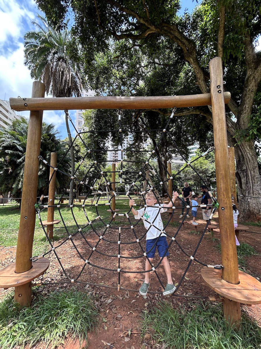 - parquinho de madeira com vários brinquedos: balanço, casinha com escorregador, circuitos, gira-gira, etc – e é inclusivo
