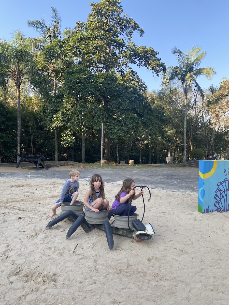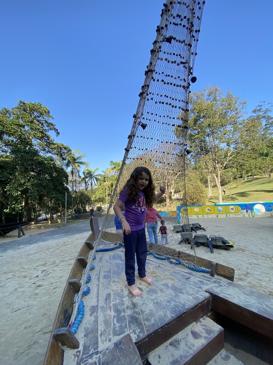 O espaço é enorme, com muita natureza, pertinho da represa Billings. Tem viveiro de plantas com atividades. Tem um parque com aldeia lúdica, circuito de desafios, jacaré gigante, recanto das águas e brinquedos com areia.